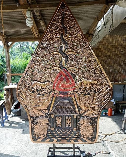Semua masyarakat Indonesia khhususnya masyarakat Jawa pasti sudah mengenal wayang. Dalam pewayangan dikenal figur gunungan yang menggambarkan gunung beserta isinya. Pada pertunjukkan seni wayang, gunung disering difungsikan sebagai pembuka dan penutup suatu babak pertunjukan. Sebelum wayang dimulai, gunungan umumnya ditancapkan di tengah-tengah layar dan setelah dimulai ditancapkan dibagian pinggir layar. Setiap pergantian tahapan cerita gunungan juga sering ditampilkan. Gunungan kadang melambangkan istana, hutan rimba, angin, api, dan lain-lain menyesuaikan konteks lakon wayang. Filosofi setiap karakter dalam pewayangan memang sangat tinggi dan menjadi khasanah budaya Jawa khususnya dan Indonesia pada umumnya. Terlepas dari filosofi gunungan, AA Gallery sangat menghargai seni dan budaya Jawa dan seluruh seni di Indonesia. AA Gallery beberapa kali menerima pesanan gunungan wayang berbahan tembaga/kuningan. Ada pesanan handicraft gunungan yang sekadar gunungan untuk dipajang, panel gunungan, ada juga gunungan yang dibuat dalam bentuk kap lampu dalam rangka untuk memperindah tampilan lampu. Sebelumnya AA Gallery juga pernah membuat lampu dinding dengan karakter wayang atau lebih tepatnya lampu dinding karakter punokawan.