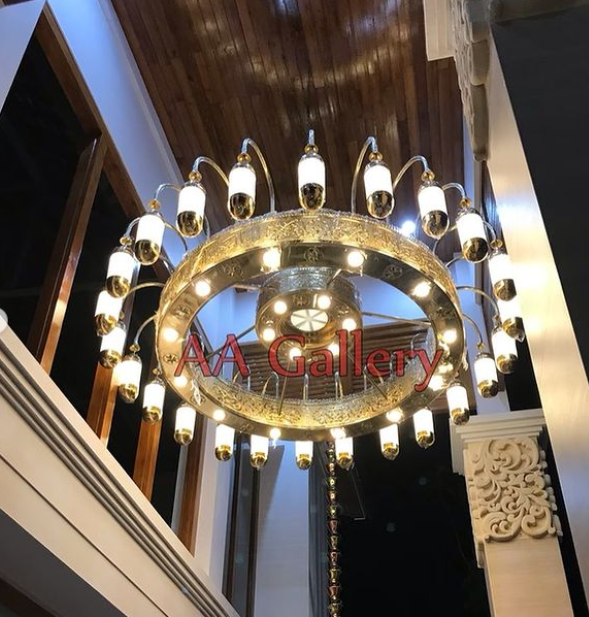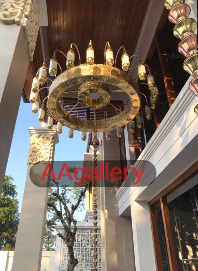 Replika Lampu Nabawi umumnya berukuran besar sekali dan tampak kuning keemasan. Replika Lampu Nabawi banyak digemari banyak orang, bisa dipajang untuk kebutuhan masjid dan bisa juga untuk dipasang di rumah atau di hotel. AA Gallery sudah berpengalaman mengerjakan proyek Replika Lampu Nabawi. Berikut ini adalah beberapa contoh gambar Replika Lampu Nabawi: